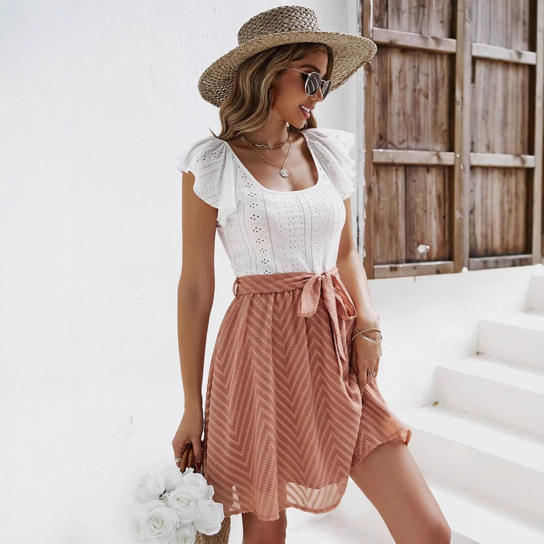 Women's Summer New Lotus Leaf Sleeve Stitching Casual Holiday DressWomen’s Summer New Lotus Leaf Sleeve Stitching Casual Holiday Dress